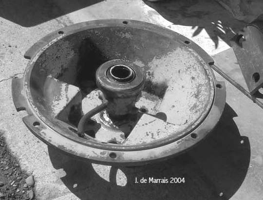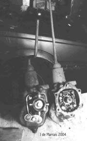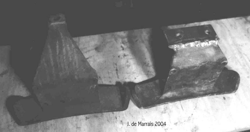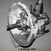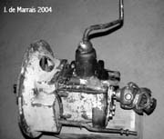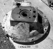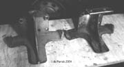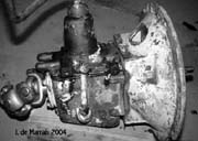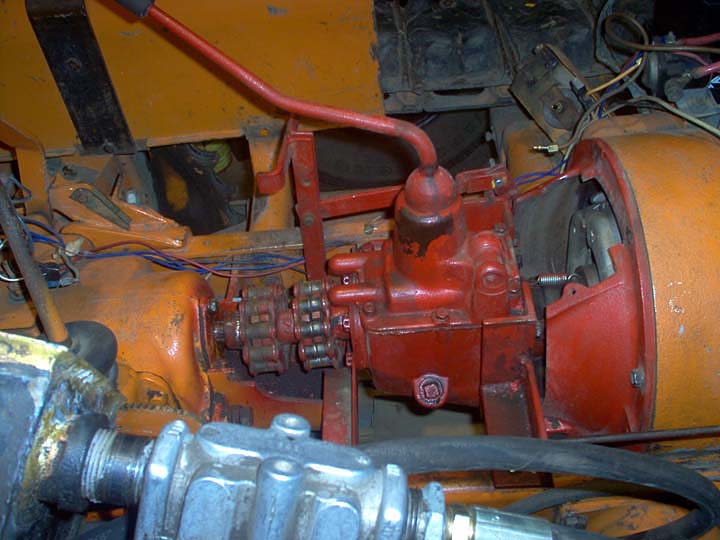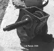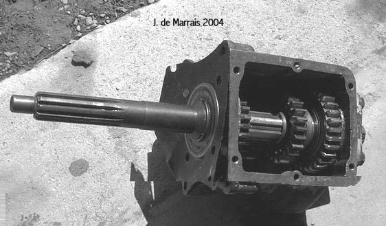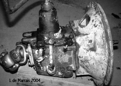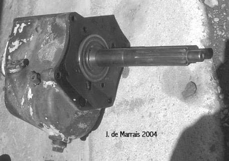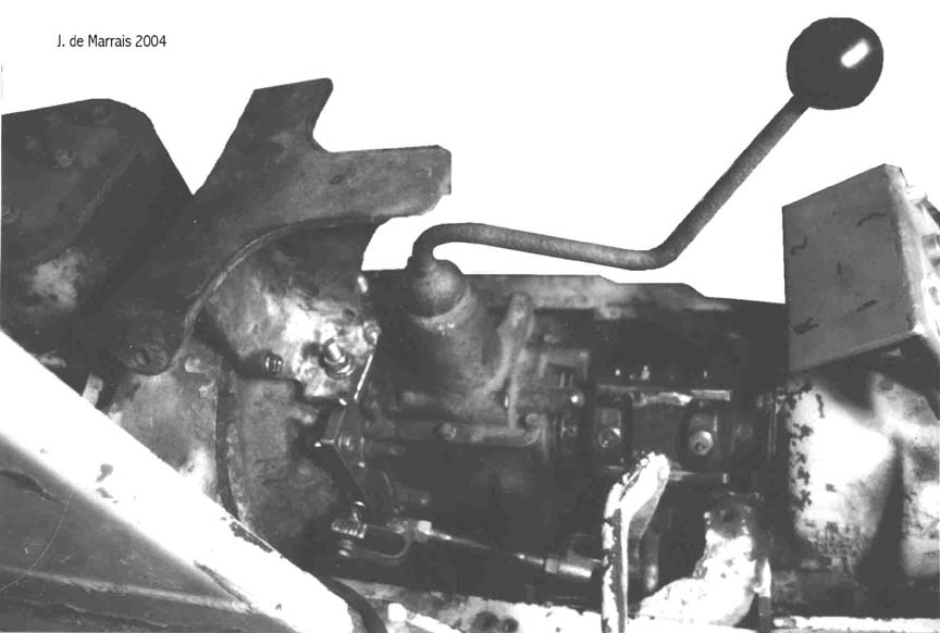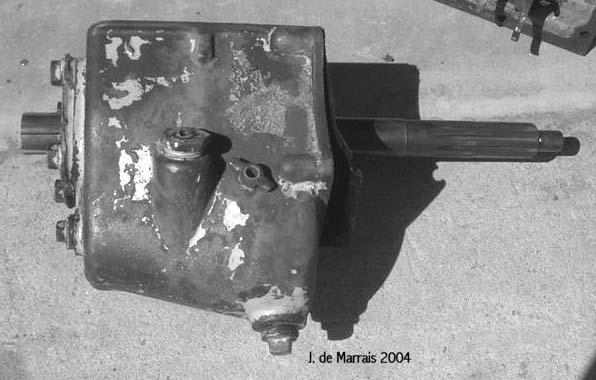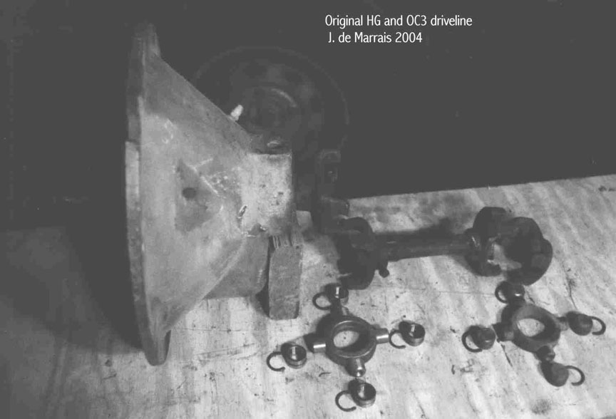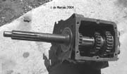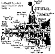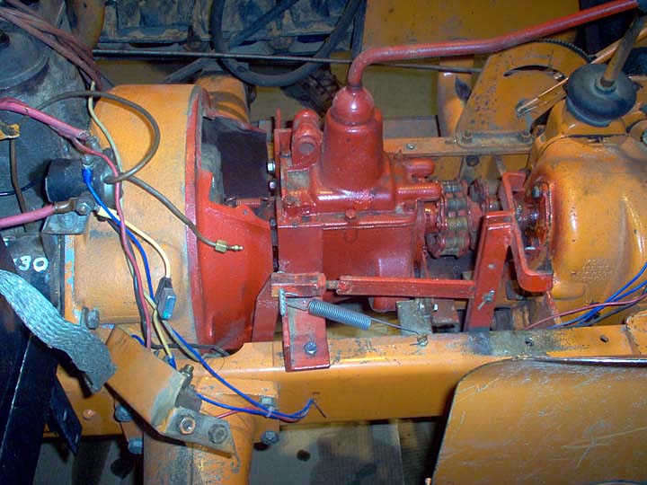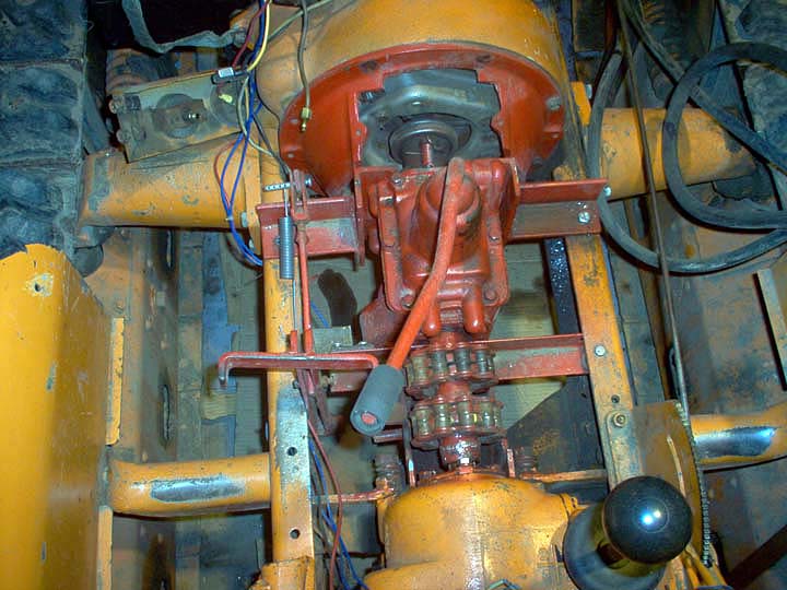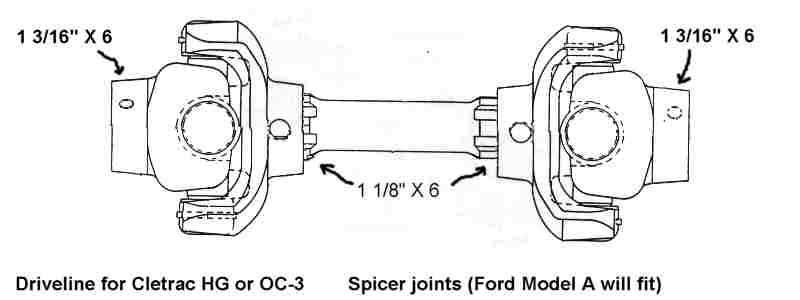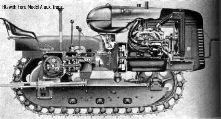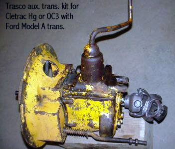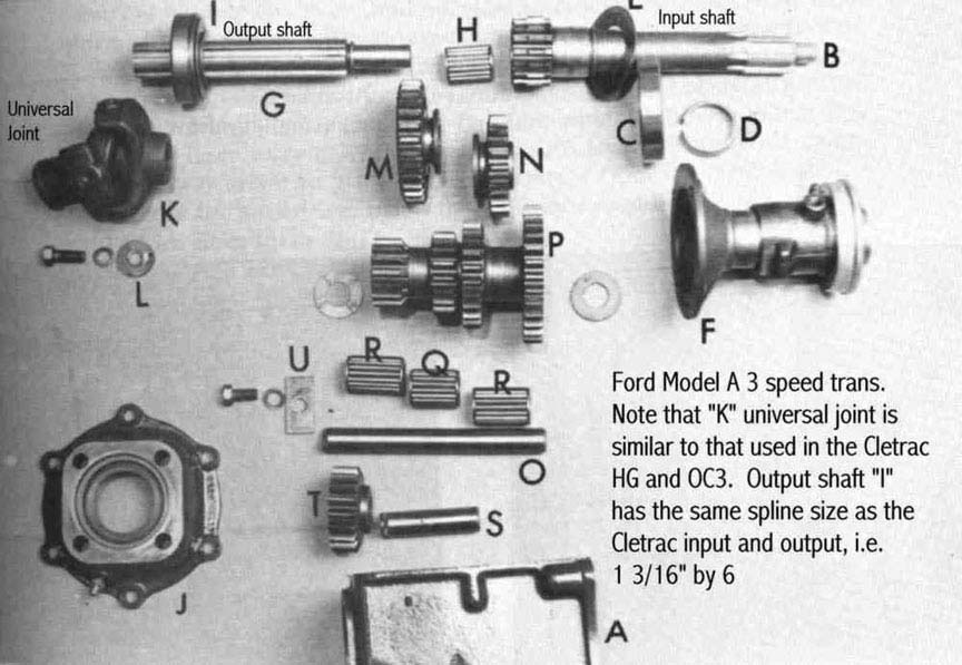 Cletrac HG or OC3 crawlers and an auxiliary transmission. Note: the following is offered free, so take it for whats its worth. I'm sure someone can improve upon what I did. The Cletrac HG or OC3 comes equipped with a Clark three-speed transaxle. The crawler was originally designed for row-crop farm work. Subsequently, it is not geared low enough for serious dirt moving, towing, or pushing, without slipping the clutch and/or lugging the engine. After installing an auxiliary transmission in my HG, its hard to imagine how I used it before the modification. It's a night-and-day difference. The little Cletrac crawler, in first gear and full throttle travels at 2.01 m.p.h. That's fast. With the three-speed auxiliary transmission installed and both transmissions in first gear, the same crawler travels at .64 m.p.h. It can push and tow with the engine almost at idle. Besides making the crawler more useful, the lower gearing will enhance the life of the engine and the clutch. Low gear is a problem in many older tractors; not just crawlers. This holds especially true when attempting to use certain types of PTO powered attachments, e.g. a snowblower or rotary tiller. It is sometimes impossible to keep the R.P.M. up to a high enough speed to operate the attachment, and at the same time, keep the ground speed slow enough to operate. A look at some other crawlers and stock ground speeds in first gear and full throttle. An Oliver OC4 with the optional auxiliary marketed as the "Slo-Low" travels 1.5 m.p.h. in high range and .8 m.p.h. in low. John Deere MC travels .9 m.p.h. John Deere 420 travels .87 m.p.h. John Deere 1010 travels 1.4 m.p.h. Allis Chalmers H3 travels at 1.2 m.p.h. A few machines that use basically the same three speed Clark transaxle as the Cletrac HGs and OC3s as follows. Terratrac GT-30 travels 1.78 m.p.h. Case 310C travels at 1.74 m.p.h. The wheel tractors known as B.F. Avery or Minneapolis-Moline BF - are both basically Cletracs with wheels and use the same Hercules IXB3 engine and Clark three-speed transaxle and travel 2.42 m.p.h. Specs. for the HG or OC3 with the Ford Model A 3 speed transmission installed as an auxiliary unit, ground speeds at full throttle are as follows: With no aux.1st - 2.01 m.p.h., 2nd - 3.19 m.p.h., 3rd - 5.24 m.p.h., Rev. - 2.33 m.p.h. With the Ford Model A three-speed transmission as an auxiliary transmission: Range 1: 1st - .64 m.p.h., 2nd - 1.02 m.p.h., 3rd - 1.68 m.p.h., Rev. - .74 m.p.h. Range 2: 1st - 1.08 m.p.h., 2nd - 1.72 m.p.h., 3rd - 2.83 m.p.h., Rev. - 1.26 m.p.h. Range 3: 1st - 2.01 m.p.h., 2nd - 3.19 m.p.h., 3rd - 5.24 m.p.h., Rev. - 2.33 m.p.h. Range Rev.: 1st - .53 rev. m.p.h., 2nd - .85 rev. m.p.h., 3rd - 1.4 rev. m.p.h., Rev. - .62 forward m.p.h. Oliver offered, as an option for the OC3, a kit for installing an auxiliary transmission. It was made by Trasco, which I believe was a company in California. The kit came with a custom made clutch housing, a modified Ford Model A three-speed transmission and miscellaneous parts. Installation required using the original Cletrac 9" diameter clutch disk, and some of the original driveshaft parts - welded together. Once the modified driveshaft is assembled, there is no easy way to remove it without damage. The transmission's input shaft was either heavily modified, or remade to accept the Cletrac clutch disk and splines. The front ball-bearing retainer on the Ford transmission was eliminated and accommodation in the new clutch housing took its place. I had never seen the Trasco kit when I began fabricating my aux. setup. If I had, I'm not sure it would have helped. I attempted to do the job with commonly available parts, wanted the finished unit to be easily serviceable, and avoided any high-tech machine work. To a degree, this was accomplished. My setup does NOT require complicated modification of the transmission. The driveshaft I fabricated uses stock Cletrac (Spicer) universal joints and is easily removable without damage. The one catch to fabricating the aux. setup is, you need a Ford Model A car (not truck) transmission. As far as I can ascertain, it is the best choice for many reasons. It seems Oliver and Trasco felt the same way. That's not to say there aren't "one-time" finds out there for other parts that might work as well, or better. The Ford transmission is simple, rugged, compact, and replacement parts are available for it at a reasonable cost. That, thanks to all the Ford Model A car collectors. The original Cletrac powershaft coming out of the clutch housing, as well as the input shaft on the original Clark three-speed transaxle in the HG and OC3, is an odd size. 1 3/16" by 6. You will be hard pressed to find anything to fit it; I've tried. Coincidence, or serendipity, some vintage Ford equipment uses the same size splines including various Model T and Model A parts. This includes the output shaft on the subject Model A transmission. So... the original Cletrac yoke fits on it perfectly. When I began searching for a Model A transmission, I didn't know what one looked like. After learning to recognize it, I began to find them all over. I do, however, live in a rural farming area where many Model A Fords were converted into farm equipment. Subsequently, there are still quite a few laying around, here and there. I found over a dozen this past summer. On the down side, I see them on Ebay at times for over $200. Supply and demand, I guess. This marks the end of my first pontification regarding the auxiliary transmission. Next installment, I'll discuss how to recognize the Model A transmission, and the modifications it needs for use in the Cletrac. That is, unless someone has a better idea. See Addendum Notes Below New part numbers for Aux. trans. If anyone is using information I've posted about constructing an aux trans. setup. I found a good part number for the throwout bearing and carrier I used. Mine came off a Cockshutt farm tractor, but it is the same one used in the 1947-48 Dodge Power